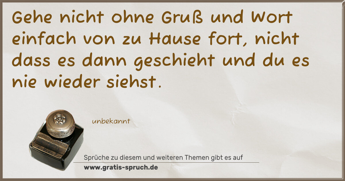 Gehe nicht ohne Gruß und Wort einfach von zu Hause fort, nicht dass es dann geschieht und du es nie wieder siehst.