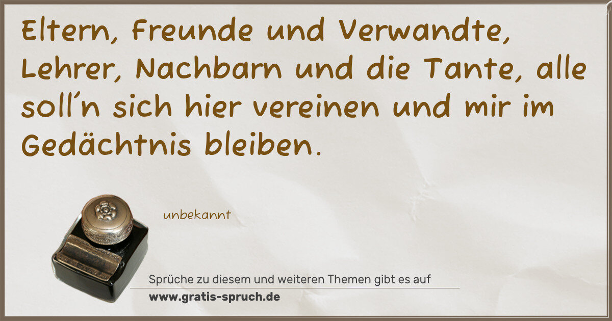 Eltern, Freunde und Verwandte, Lehrer, Nachbarn und die Tante, alle soll'n sich hier vereinen und mir im Gedächtnis bleiben.