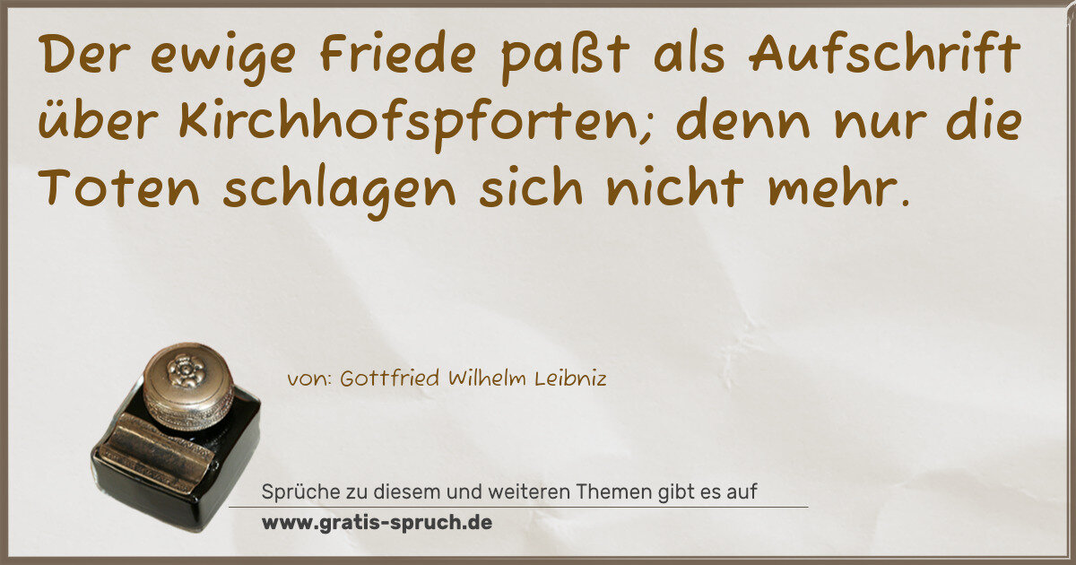 Der ewige Friede paßt als Aufschrift über Kirchhofspforten; denn nur die Toten schlagen sich nicht mehr.