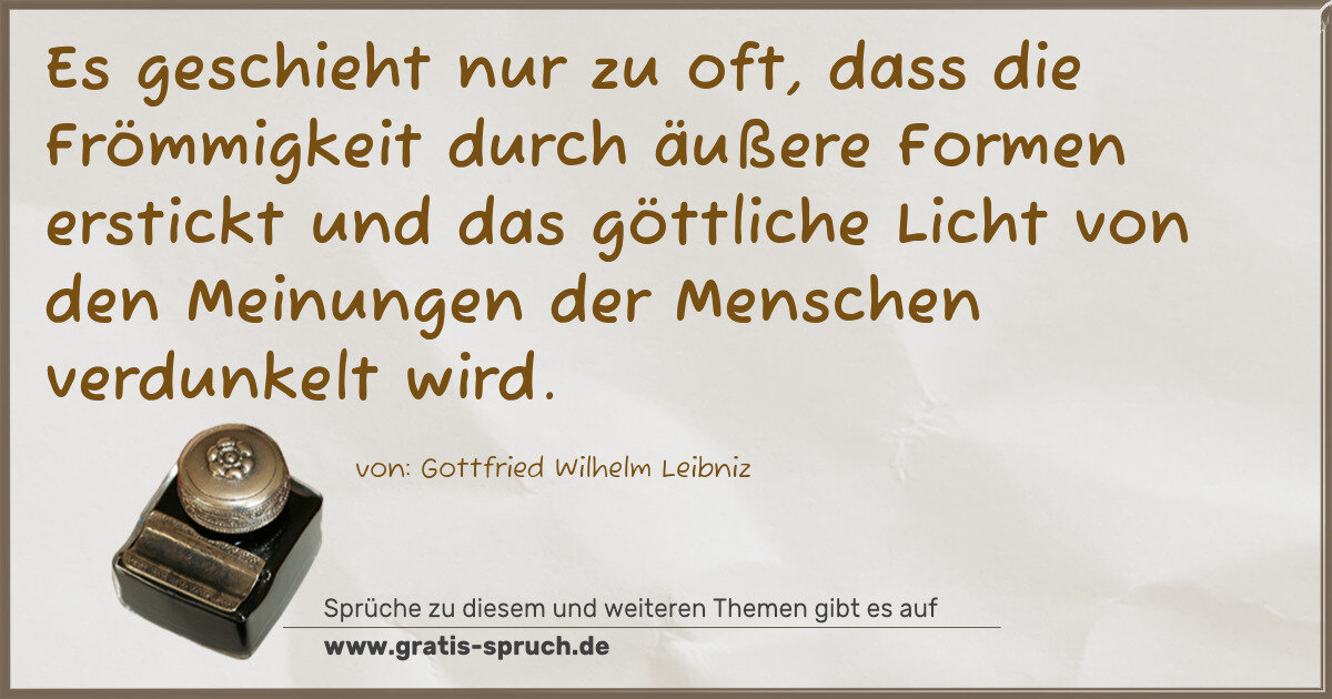 Es geschieht nur zu oft, dass die Frömmigkeit durch äußere Formen erstickt und das göttliche Licht von den Meinungen der Menschen verdunkelt wird.