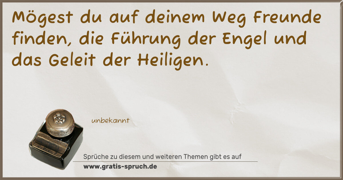 Mögest du auf deinem Weg Freunde finden, die Führung der Engel und das Geleit der Heiligen.