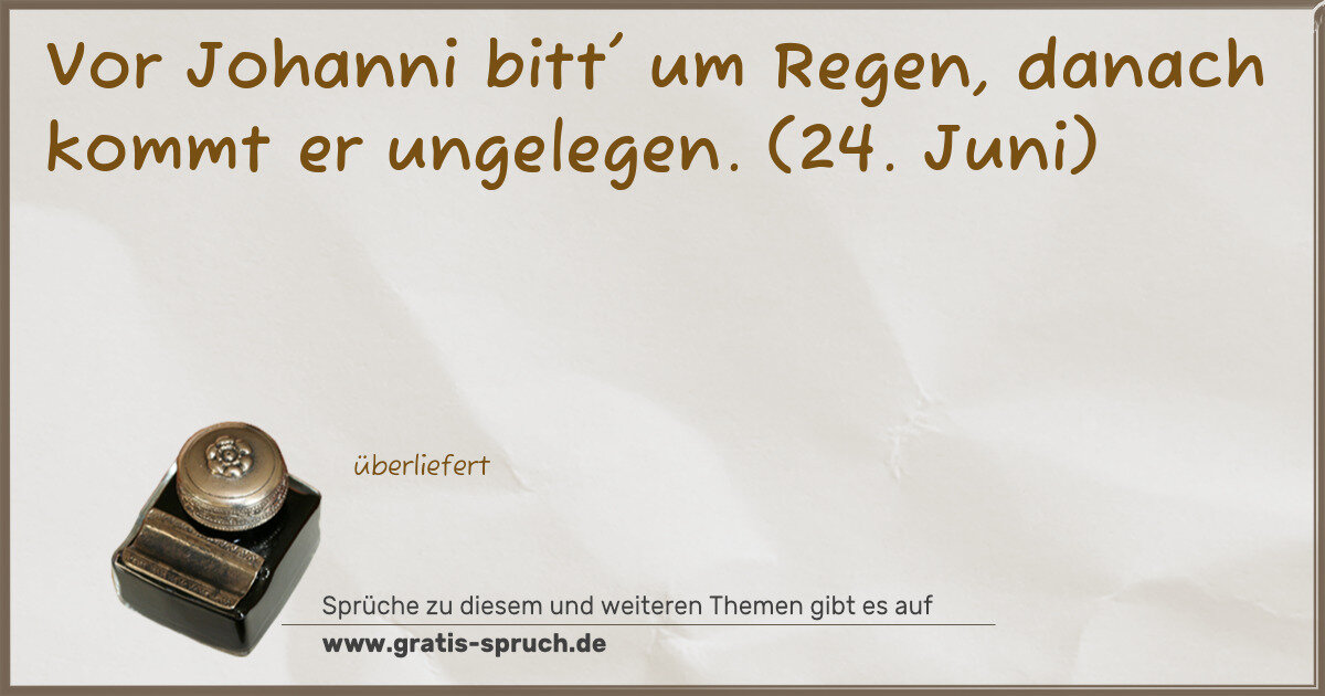 Vor Johanni bitt' um Regen, danach kommt er ungelegen. (24. Juni)