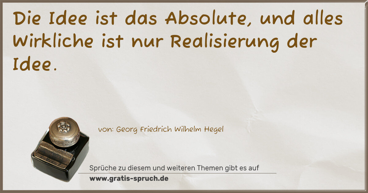 Die Idee ist das Absolute, und alles Wirkliche ist nur Realisierung der Idee.