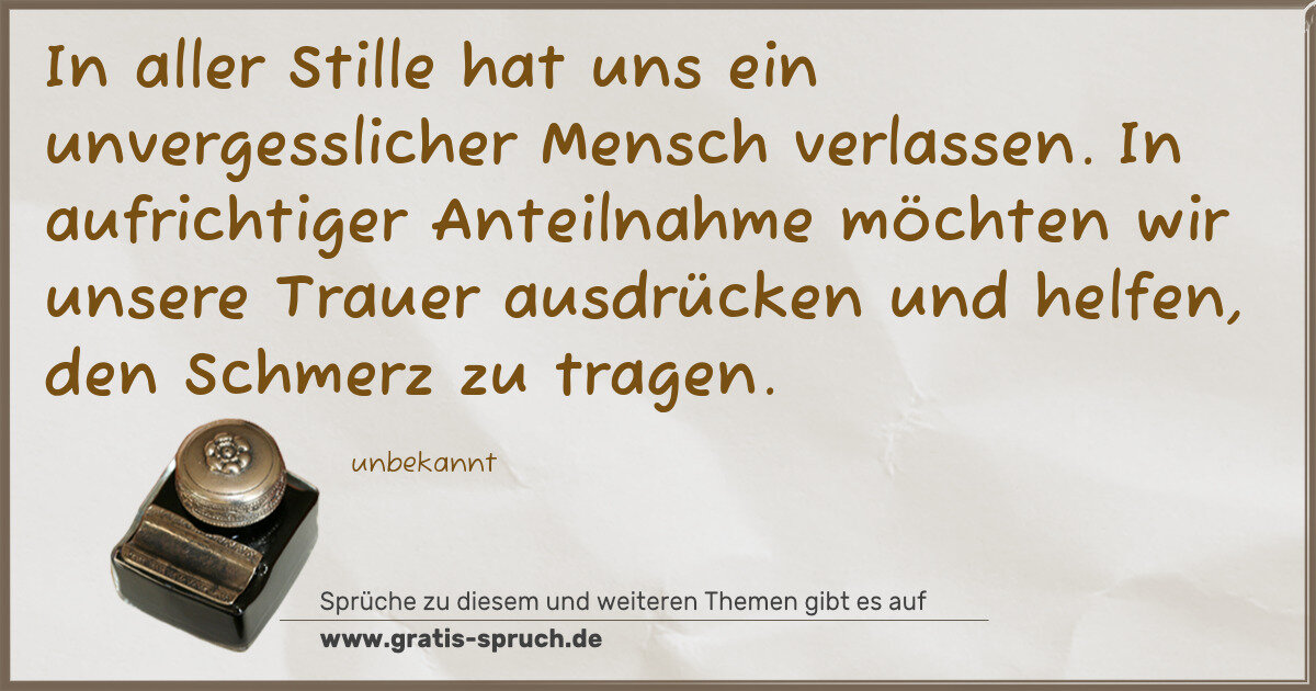 In aller Stille hat uns ein unvergesslicher Mensch verlassen. In aufrichtiger Anteilnahme möchten wir unsere Trauer ausdrücken und helfen, den Schmerz zu tragen.