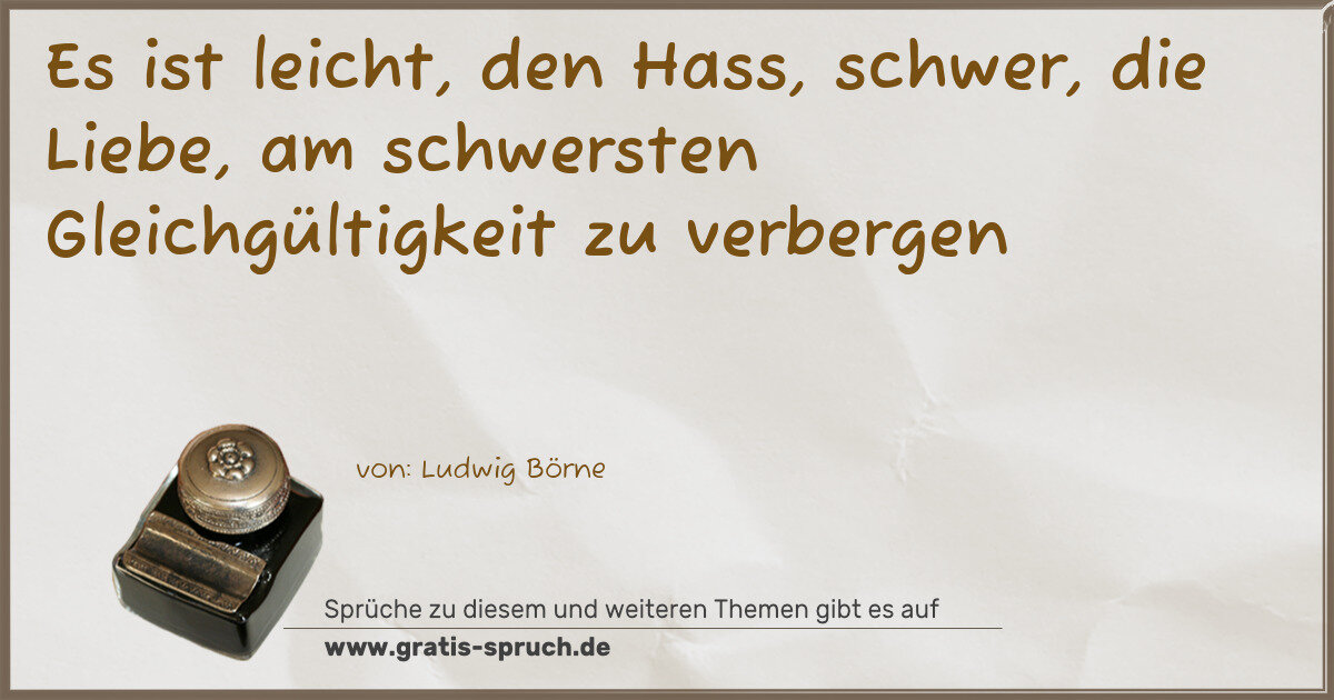 Es ist leicht, den Hass, schwer, die Liebe, am schwersten Gleichgültigkeit zu verbergen
