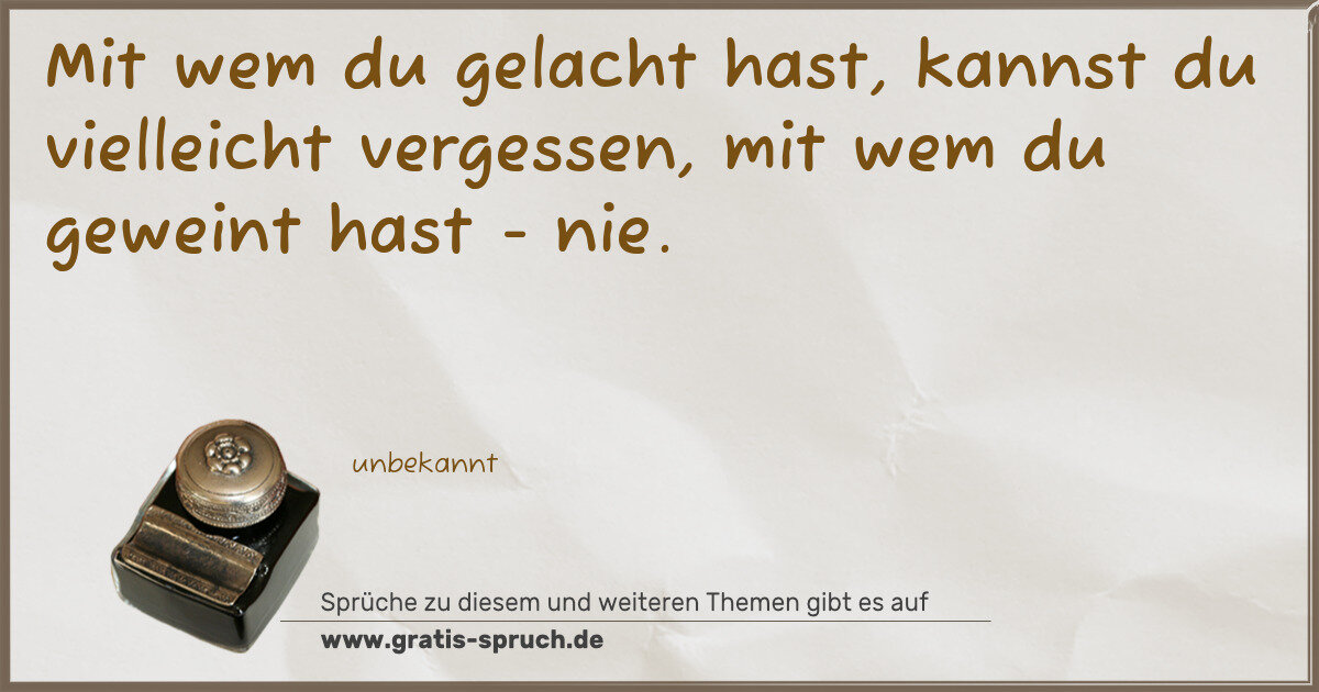 Mit wem du gelacht hast, kannst du vielleicht vergessen, mit wem du geweint hast - nie.