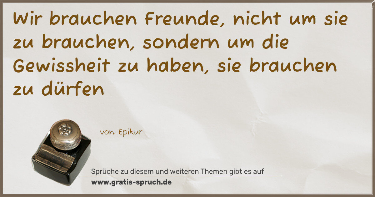 Wir brauchen Freunde, nicht um sie zu brauchen, sondern um die Gewissheit zu haben, sie brauchen zu dürfen
