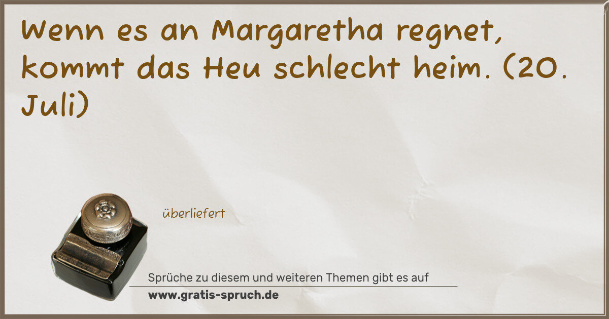 Wenn es an Margaretha regnet, kommt das Heu schlecht heim. (20. Juli)