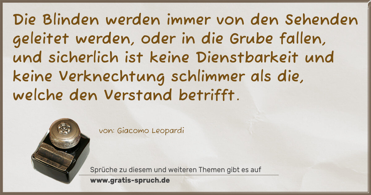 Die Blinden werden immer von den Sehenden geleitet werden, oder in die Grube fallen, und sicherlich ist keine Dienstbarkeit und keine Verknechtung schlimmer als die, welche den Verstand betrifft.