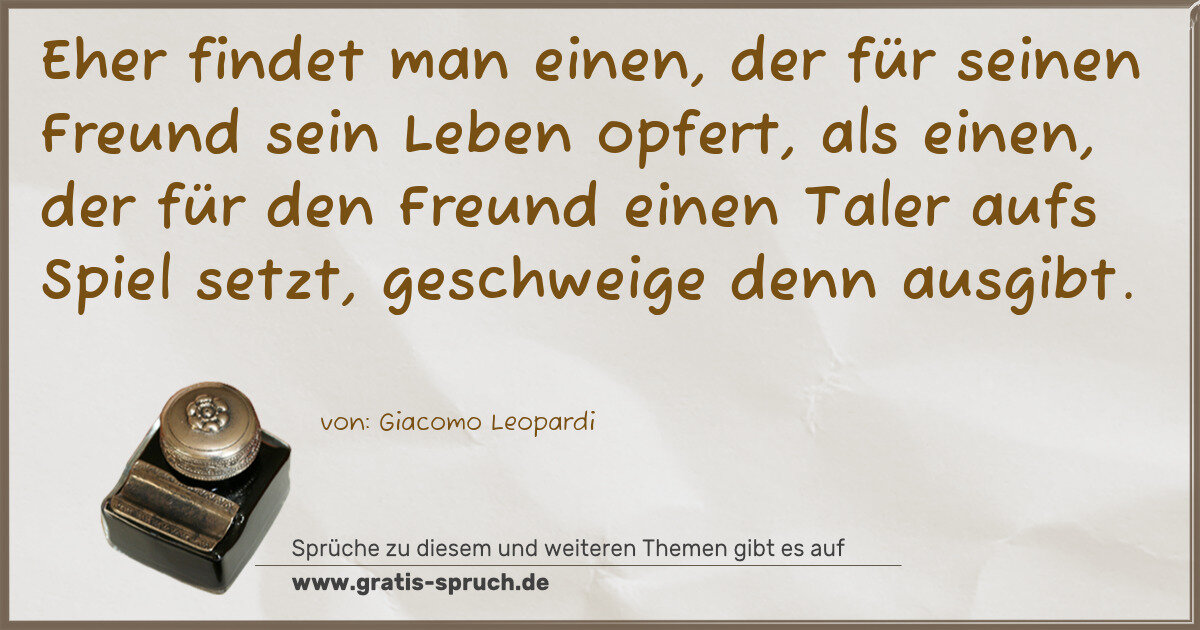 Eher findet man einen, der für seinen Freund sein Leben opfert, als einen, der für den Freund einen Taler aufs Spiel setzt, geschweige denn ausgibt.