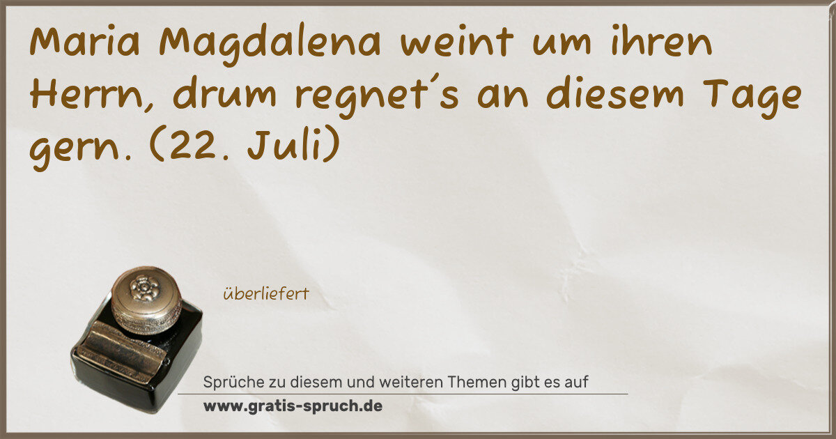 Maria Magdalena weint um ihren Herrn, drum regnet's an diesem Tage gern. (22. Juli)
