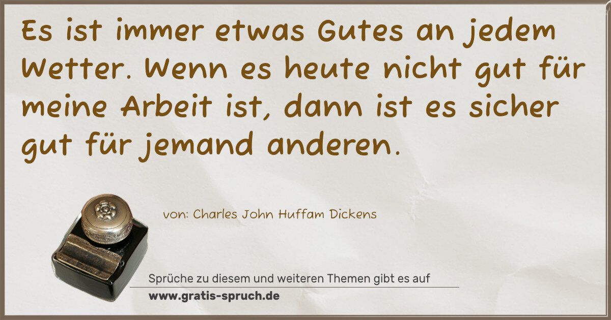 Es ist immer etwas Gutes an jedem Wetter. Wenn es heute nicht gut für meine Arbeit ist, dann ist es sicher gut für jemand anderen.