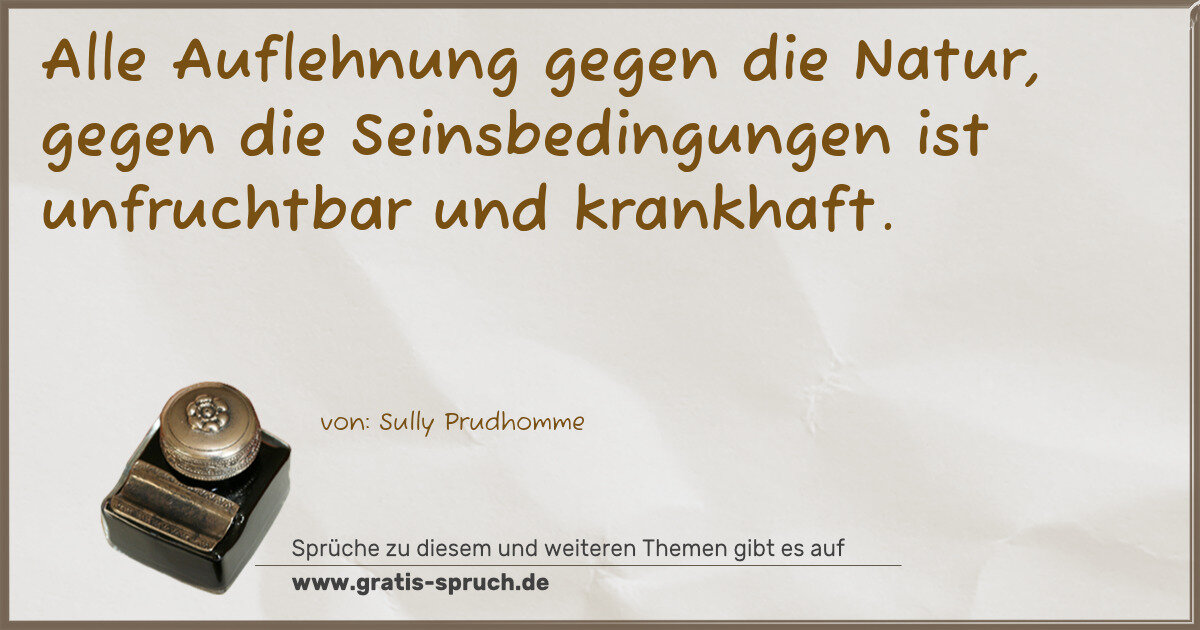 Alle Auflehnung gegen die Natur, gegen die Seinsbedingungen ist unfruchtbar und krankhaft.