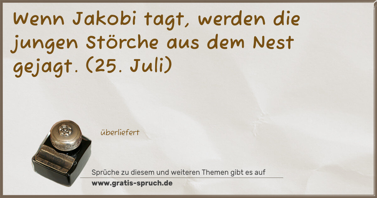 Wenn Jakobi tagt, werden die jungen Störche aus dem Nest gejagt. (25. Juli)