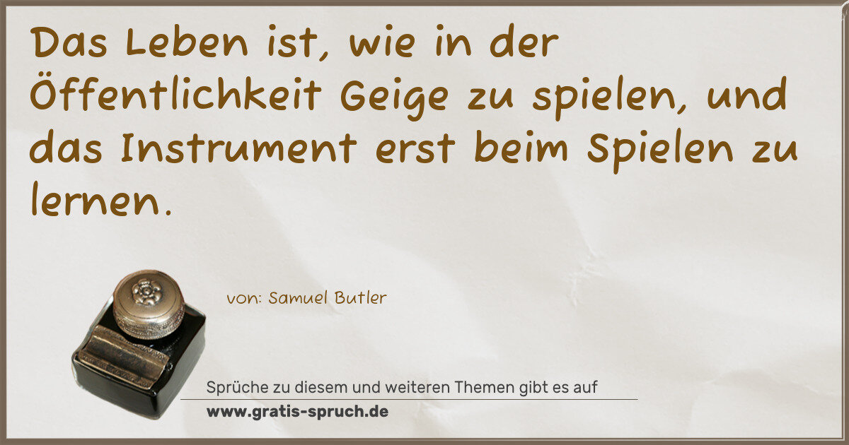 Das Leben ist, wie in der Öffentlichkeit Geige zu spielen, und das Instrument erst beim Spielen zu lernen.