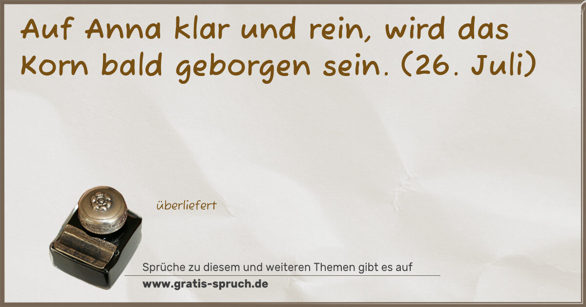 Auf Anna klar und rein, wird das Korn bald geborgen sein. (26. Juli)