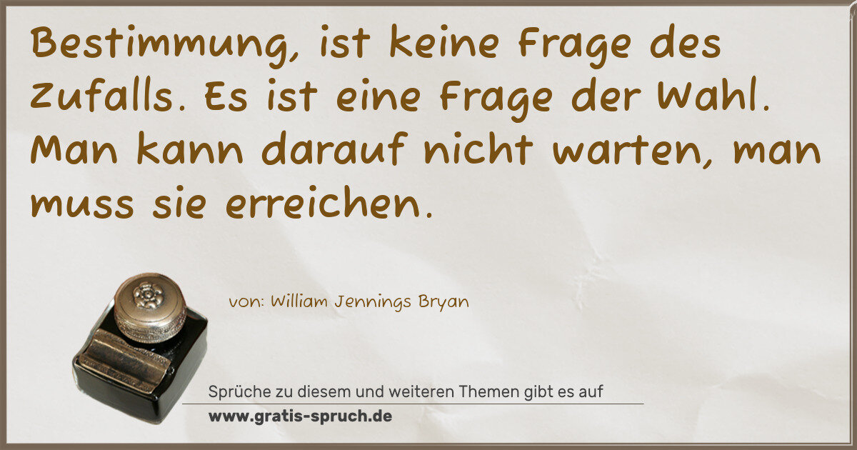 Bestimmung, ist keine Frage des Zufalls. Es ist eine Frage der Wahl. Man kann darauf nicht warten, man muss sie erreichen.
