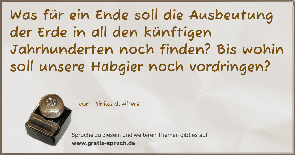 Was für ein Ende soll die Ausbeutung der Erde in all den künftigen Jahrhunderten noch finden? Bis wohin soll unsere Habgier noch vordringen?