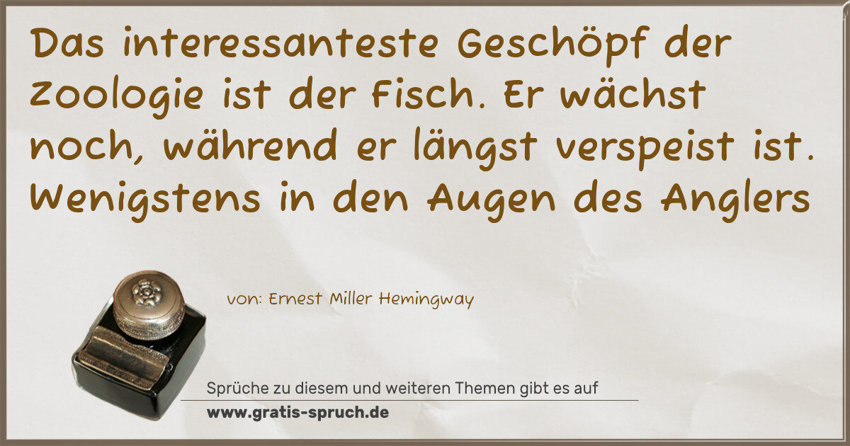 Das interessanteste Geschöpf der Zoologie ist der Fisch. Er wächst noch, während er längst verspeist ist. Wenigstens in den Augen des Anglers