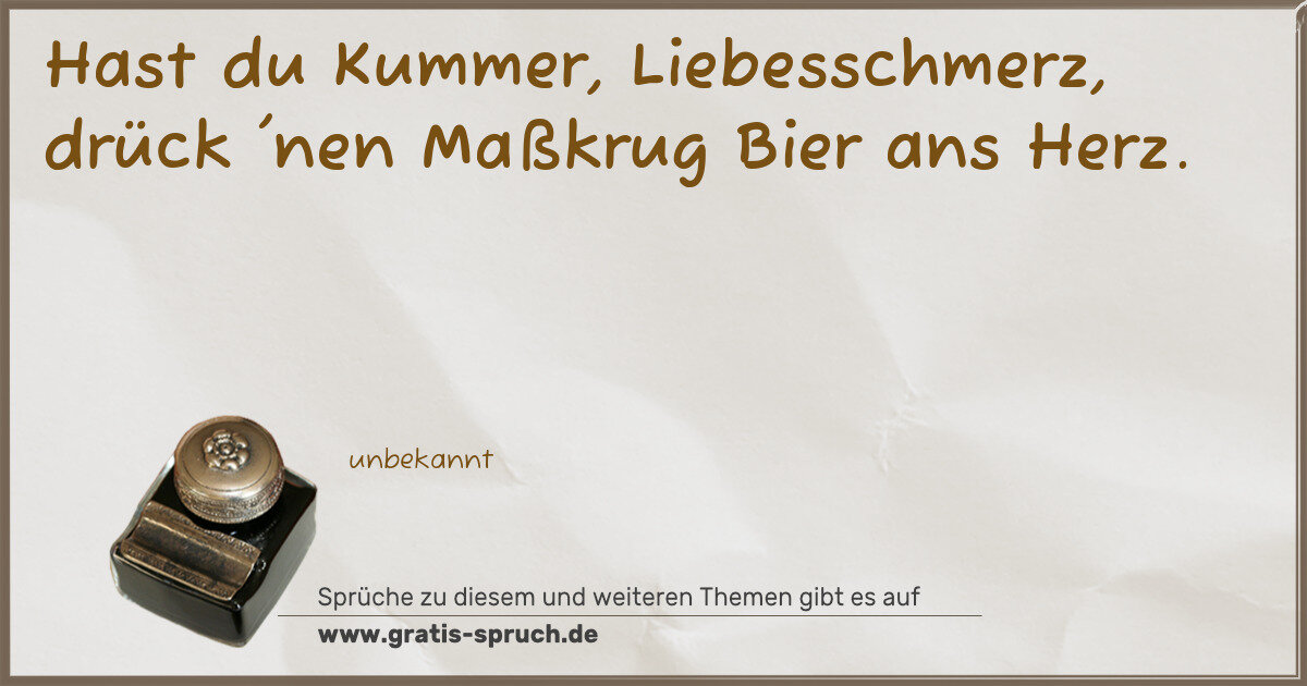 Hast du Kummer, Liebesschmerz, drück 'nen Maßkrug Bier ans Herz.
