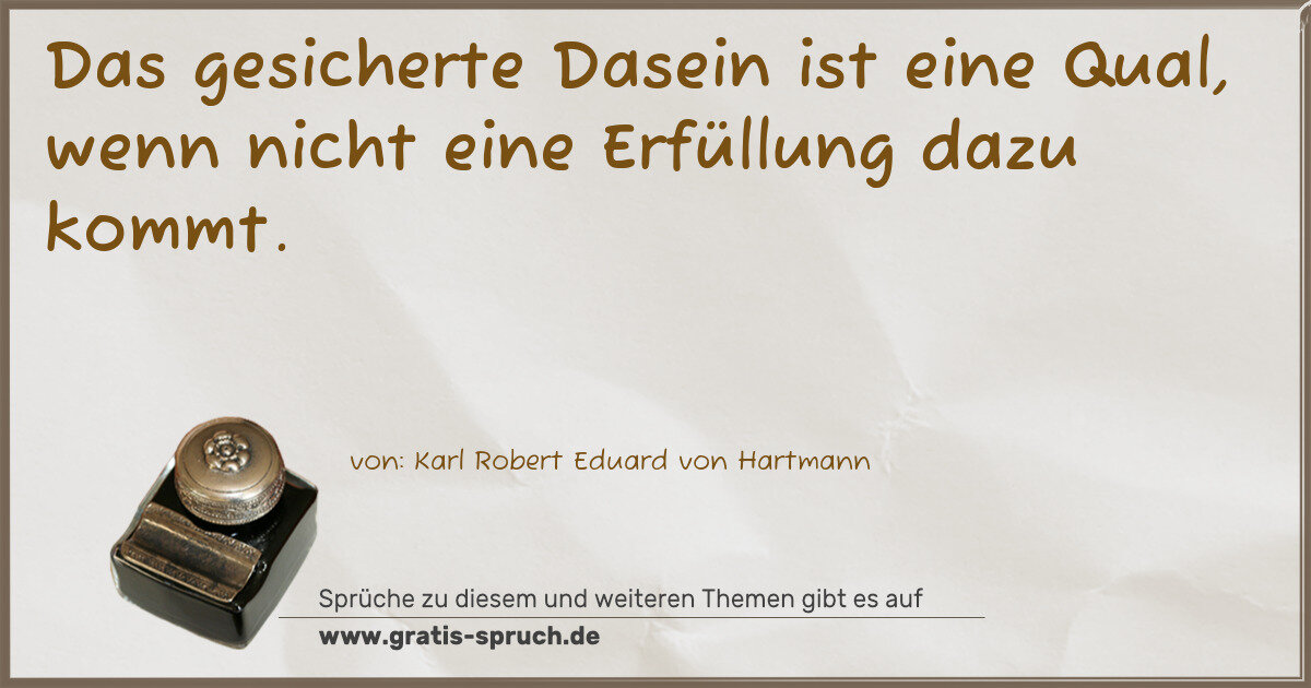 Das gesicherte Dasein ist eine Qual, wenn nicht eine Erfüllung dazu kommt.