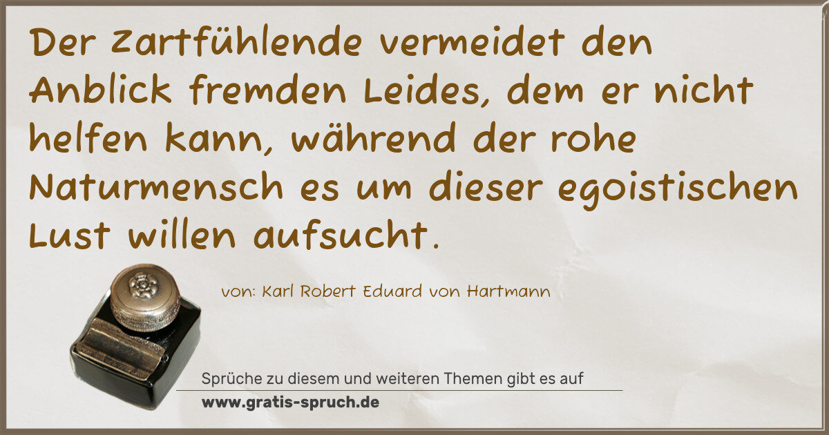 Der Zartfühlende vermeidet den Anblick fremden Leides, dem er nicht helfen kann, während der rohe Naturmensch es um dieser egoistischen Lust willen aufsucht.
