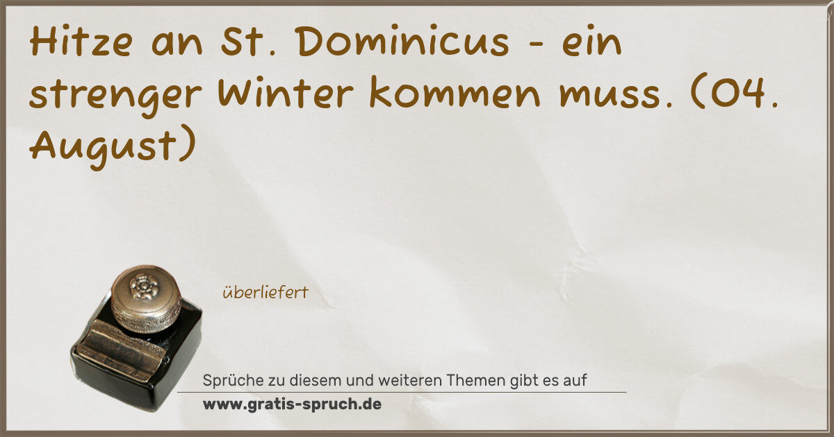 Hitze an St. Dominicus - ein strenger Winter kommen muss. (04. August)