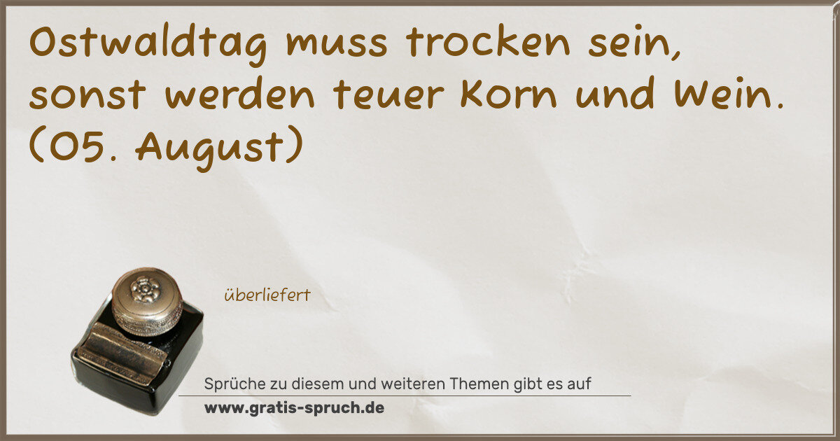 Ostwaldtag muss trocken sein, sonst werden teuer Korn und Wein. (05. August)