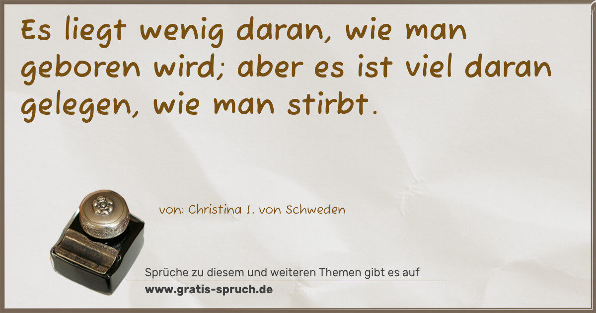 Es liegt wenig daran, wie man geboren wird; aber es ist viel daran gelegen, wie man stirbt.