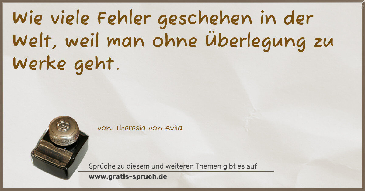 Wie viele Fehler geschehen in der Welt, weil man ohne Überlegung zu Werke geht.