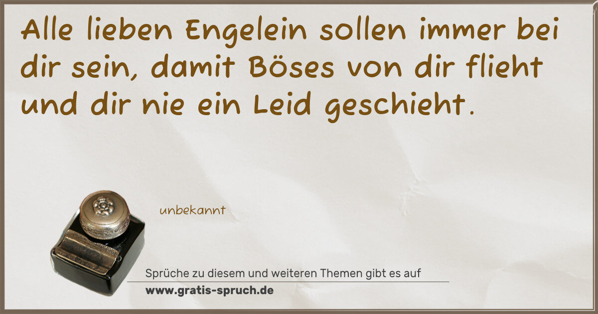 Alle lieben Engelein sollen immer bei dir sein, damit Böses von dir flieht und dir nie ein Leid geschieht.