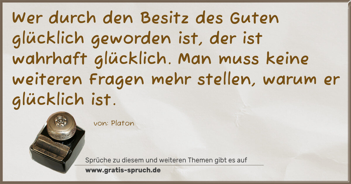 Wer durch den Besitz des Guten glücklich geworden ist, der ist wahrhaft glücklich. Man muss keine weiteren Fragen mehr stellen, warum er glücklich ist.