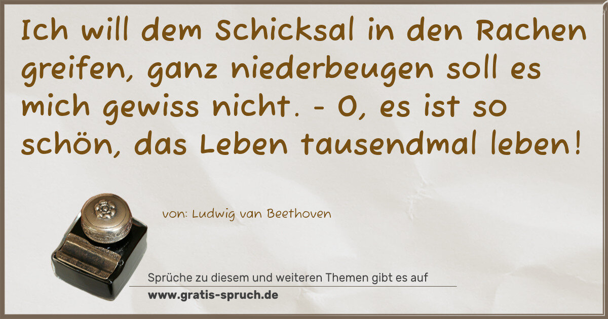 Ich will dem Schicksal in den Rachen greifen, ganz niederbeugen soll es mich gewiss nicht. - O, es ist so schön, das Leben tausendmal leben!