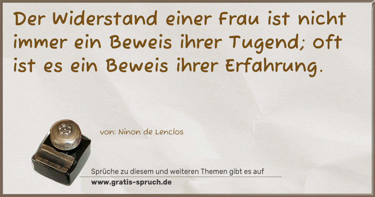 Der Widerstand einer Frau ist nicht immer ein Beweis ihrer Tugend; oft ist es ein Beweis ihrer Erfahrung.