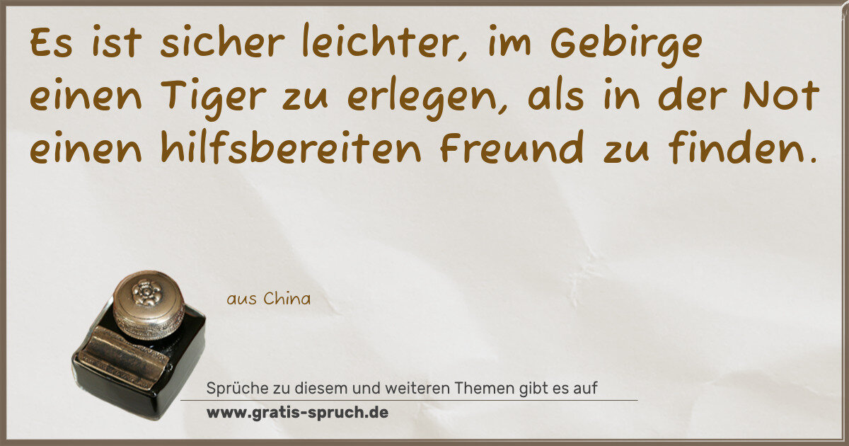 Es ist sicher leichter, im Gebirge einen Tiger zu erlegen, als in der Not einen hilfsbereiten Freund zu finden.