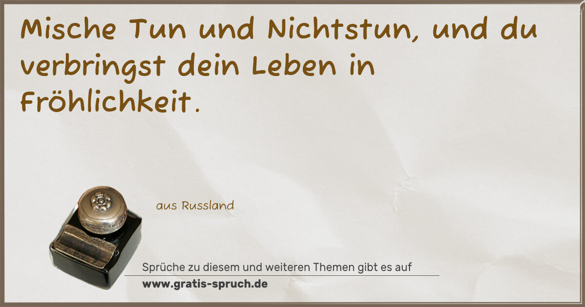 Mische Tun und Nichtstun, und du verbringst dein Leben in Fröhlichkeit.