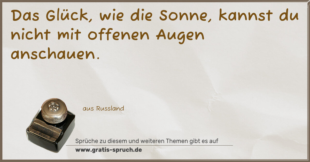 Das Glück, wie die Sonne, kannst du nicht mit offenen Augen anschauen.