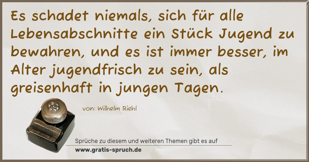 Es schadet niemals, sich für alle Lebensabschnitte ein Stück Jugend zu bewahren, und es ist immer besser, im Alter jugendfrisch zu sein, als greisenhaft in jungen Tagen.