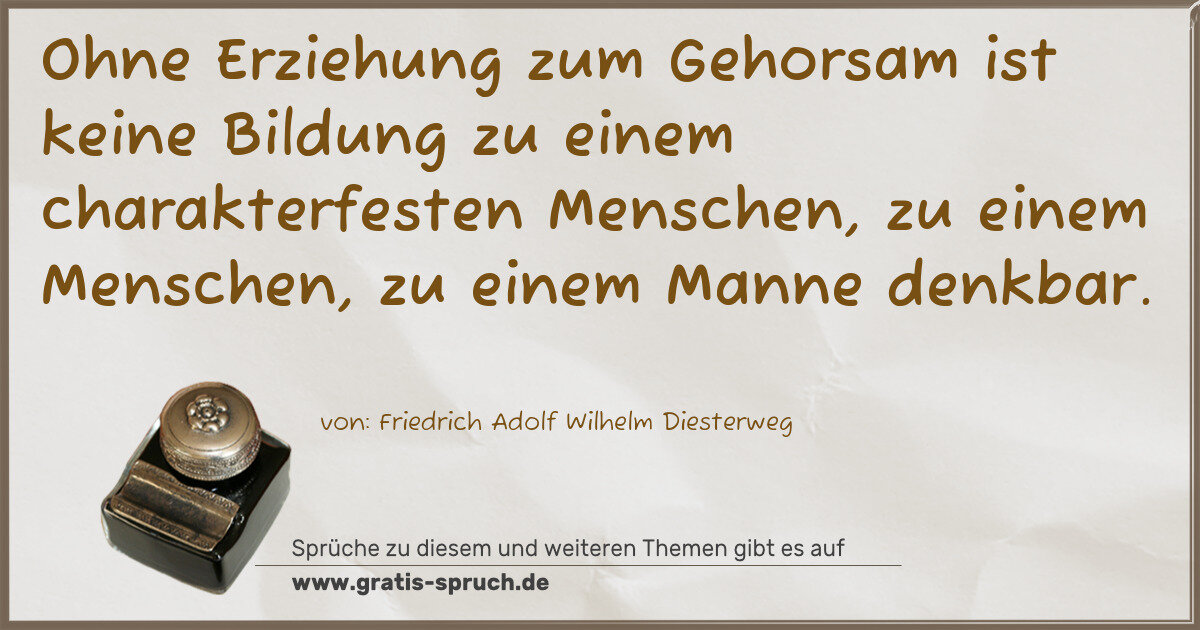 Ohne Erziehung zum Gehorsam ist keine Bildung zu einem charakterfesten Menschen, zu einem Menschen, zu einem Manne denkbar.