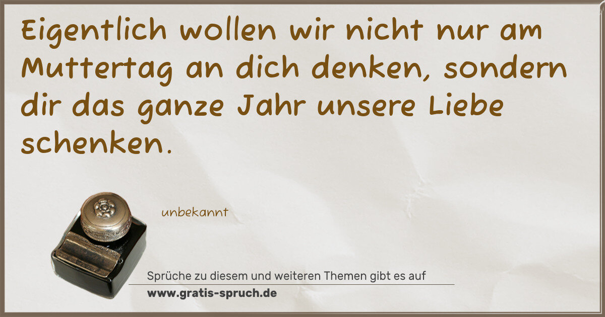 Eigentlich wollen wir nicht nur am Muttertag an dich denken, sondern dir das ganze Jahr unsere Liebe schenken.