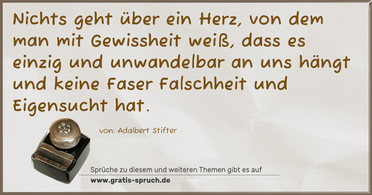 Nichts geht über ein Herz, von dem man mit Gewissheit weiß, dass es einzig und unwandelbar an uns hängt und keine Faser Falschheit und Eigensucht hat.