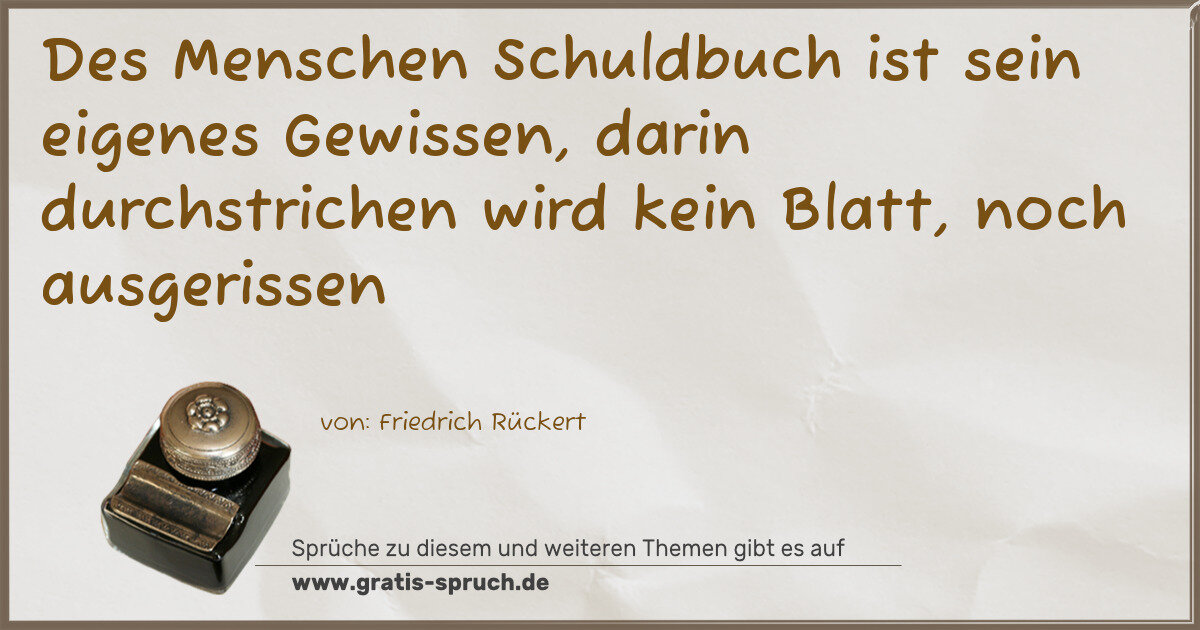 Des Menschen Schuldbuch ist sein eigenes Gewissen, darin durchstrichen wird kein Blatt, noch ausgerissen