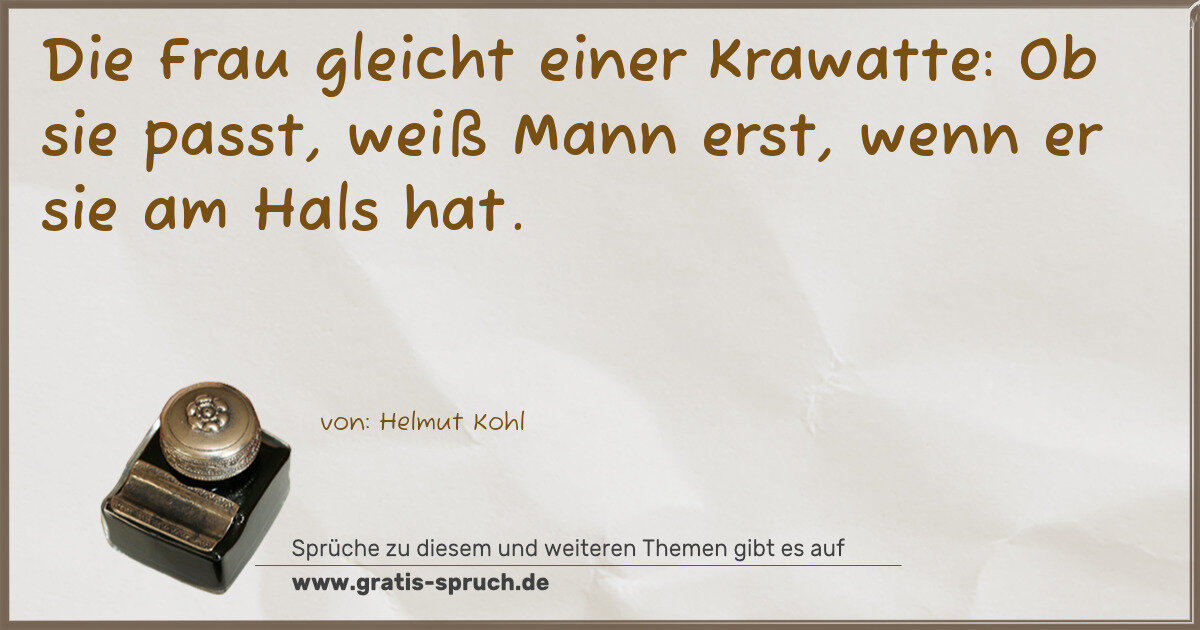Die Frau gleicht einer Krawatte: Ob sie passt, weiß Mann erst, wenn er sie am Hals hat.