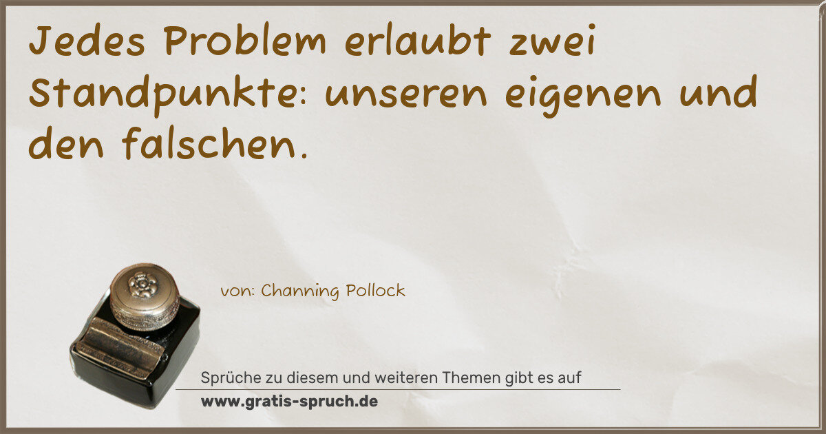 Jedes Problem erlaubt zwei Standpunkte: unseren eigenen und den falschen.