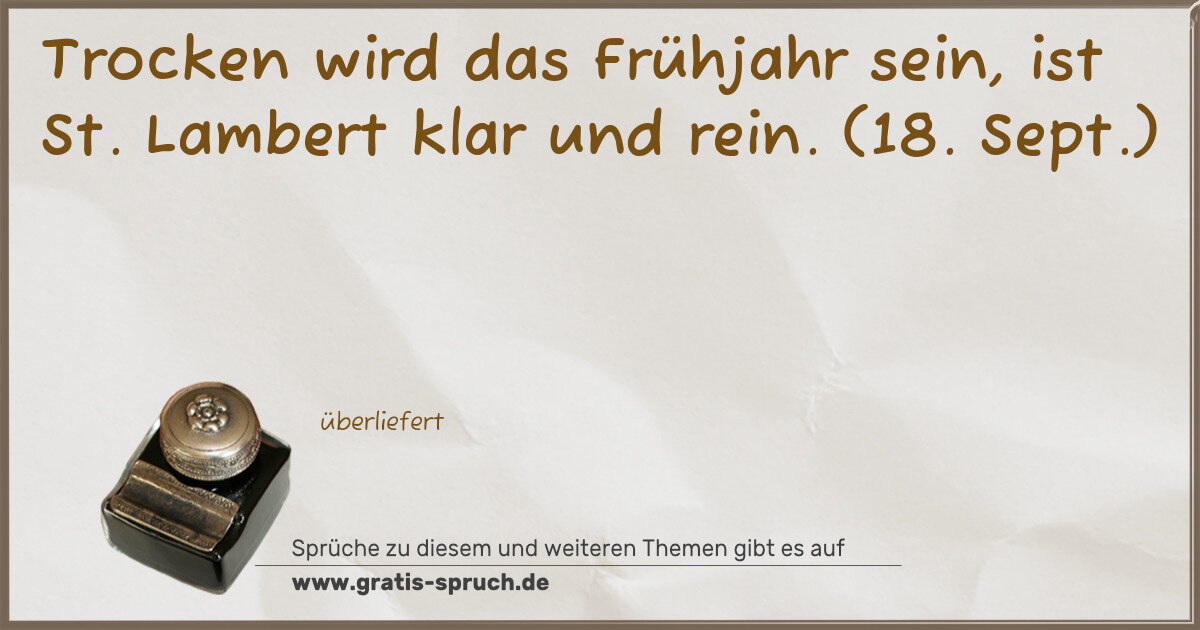 Trocken wird das Frühjahr sein, ist St. Lambert klar und rein. (18. Sept.)
