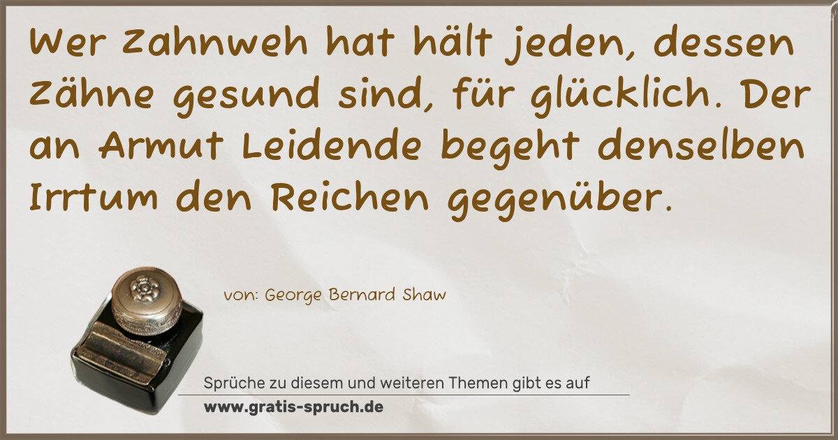 Wer Zahnweh hat hält jeden, dessen Zähne gesund sind, für glücklich. Der an Armut Leidende begeht denselben Irrtum den Reichen gegenüber.