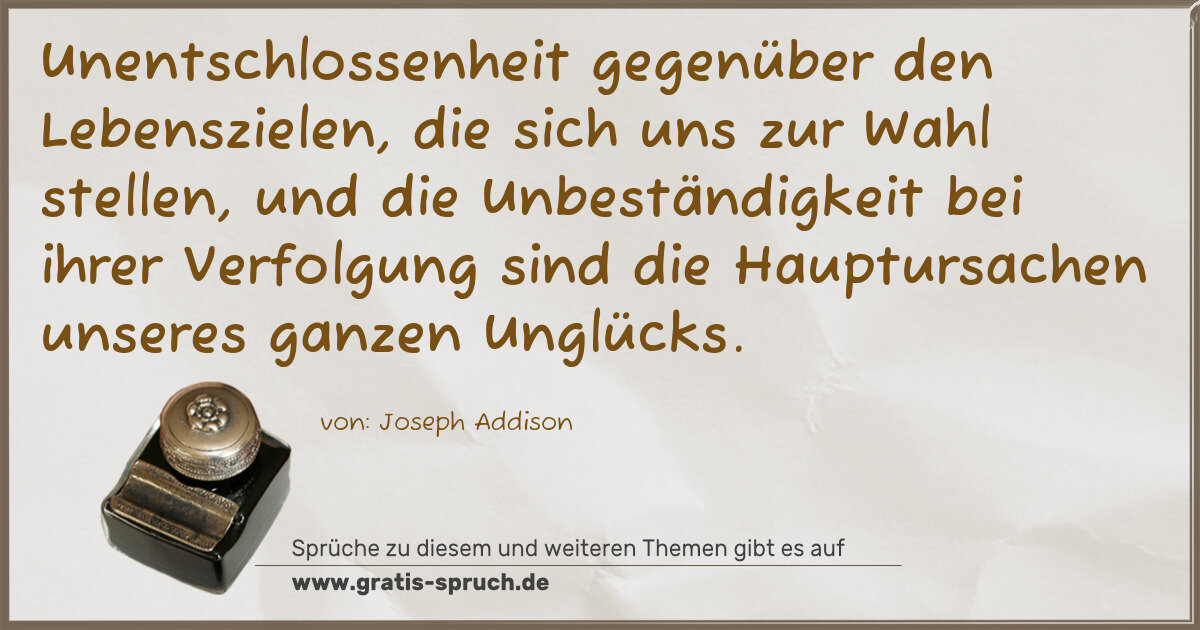 Unentschlossenheit gegenüber den Lebenszielen, die sich uns zur Wahl stellen, und die Unbeständigkeit bei ihrer Verfolgung sind die Hauptursachen unseres ganzen Unglücks.