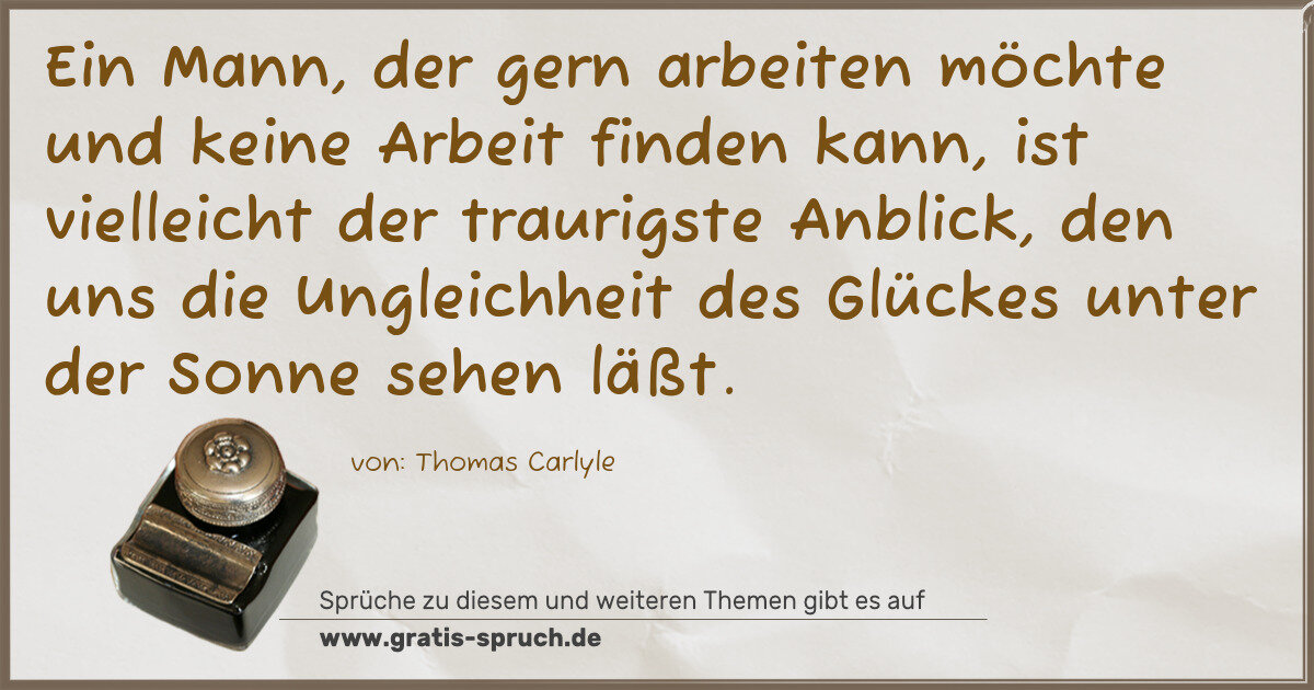 Ein Mann, der gern arbeiten möchte und keine Arbeit finden kann, ist vielleicht der traurigste Anblick, den uns die Ungleichheit des Glückes unter der Sonne sehen läßt.