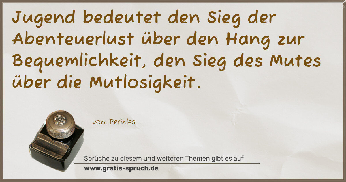 Jugend bedeutet den Sieg der Abenteuerlust über den Hang zur Bequemlichkeit, den Sieg des Mutes über die Mutlosigkeit.