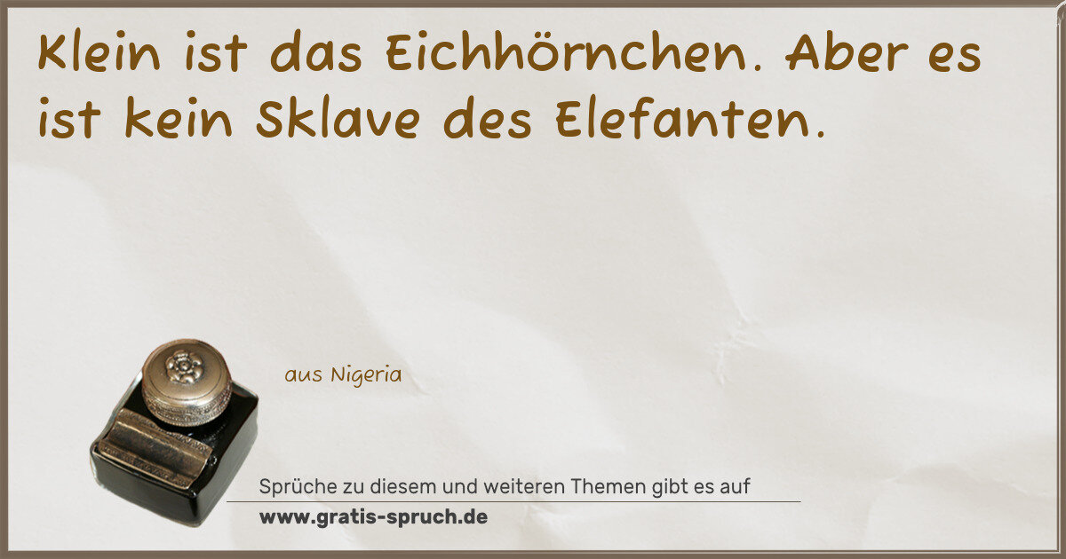 Klein ist das Eichhörnchen. Aber es ist kein Sklave des Elefanten.